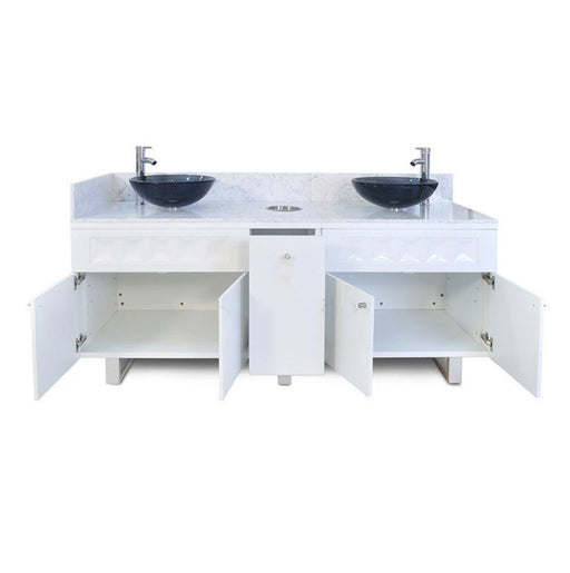 ANSPresenting an exquisite cabinet adorned with a sophisticated raised glass bowl and a lavish white marble top, all encapsulated in a space-saving an...
