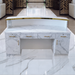 Since the reception desk is the first thing customers see when they walk into your salon, it should provide a positive first impression. This elegantly designed welcome desk with gold accents and a marble finish is the height of luxury and is guaranteed to spark discussion.